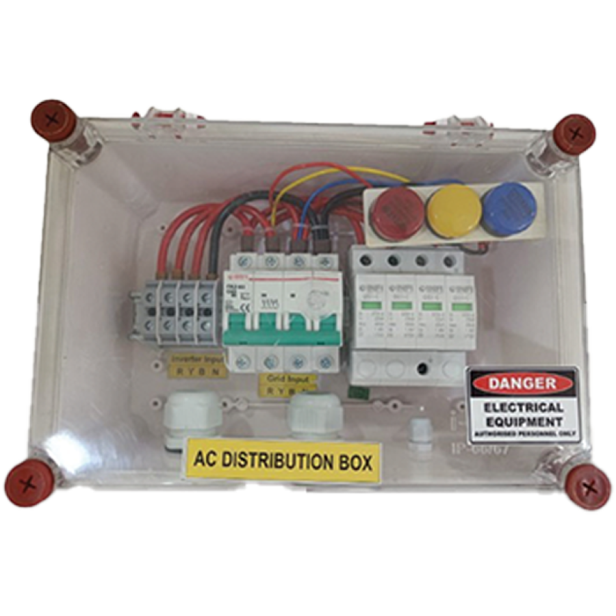 This is 3Phase ACDB box with RYB Indicator which is basically used after Solar Inverter for protection of surge occur from AC Side. This is use for 16-20Kw site.